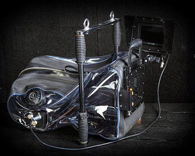The SCUBACAM Splash-Bag is designed for filming in and around water, accommodating larger camera systems such as RED, ARRI 35, ALEXA Mini/LF, Sony Venice, and others. It supports most prime lenses and compact zooms.